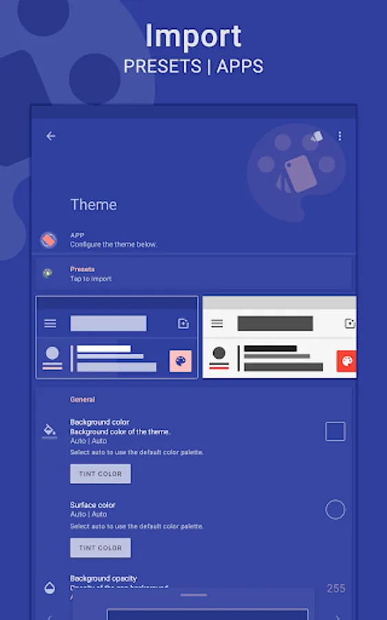 Palettes is a universal manager for apps supporting the dynamic theme on Android. It provides some default configurations which can be extended to create custom ones. Let's give it a try to explore its other features.