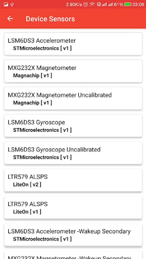 • Device Sensors [displays list of all the sensors present in device]