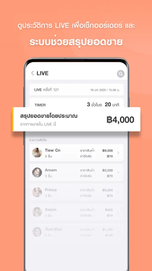 - Summary of sales immediately while live selling items with an automatic assistant system