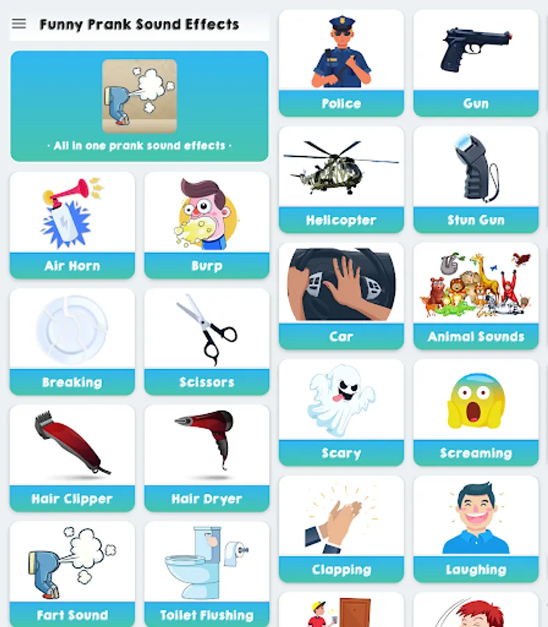 Prank sounds for mischievous jokes, for you and all your friends! With all these shaver prank, car sounds, glass breaking, doorbell, and other high-quality clippers prank & scary sounds, you will be able to make a joke out of everyday/everywhere regular situations! Don’t let your life be boring! DOWNLOAD this Free Haircut prank, fart & air horn & magnificent sounds to entertaining times!