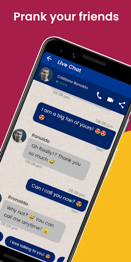 Download this Cristiano Ronaldo Video Call Game app and prank your friends by making Cristiano Ronaldo live video call like a real. Even you can screenshot during video call and then share them on your social media.