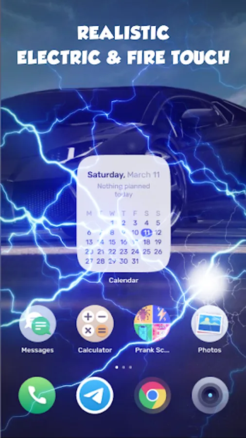 Open the app and start playing this fire and electric screen feature. Then pass this phone to your mom, your dad or your daughter, your friend. Once they touch the screen, electric rays will happen. And see how much shock they will get! LOL