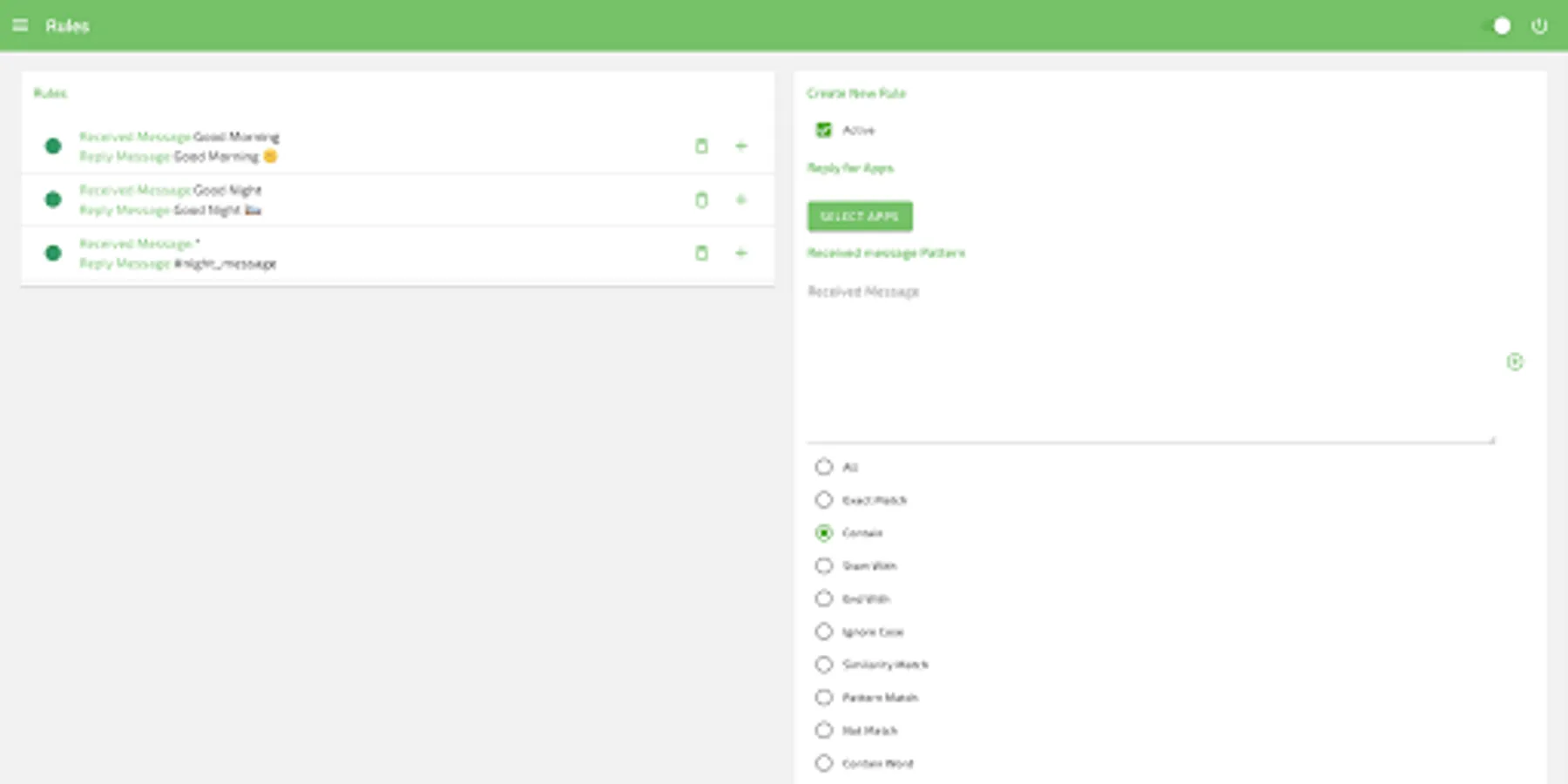🤖 Create custom reply message patterns like Exact match, Contain, Start with, End with and many more...