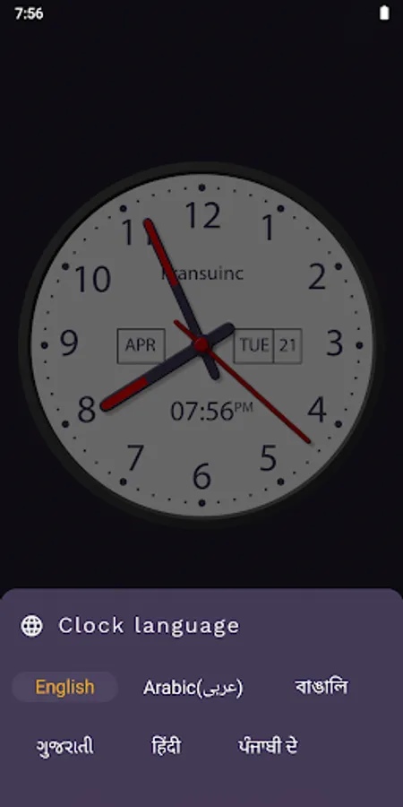 🕓 Set Clock with multiple Languages like English, Arabic, Bangla, Punjabi, Hindi, Gujarati