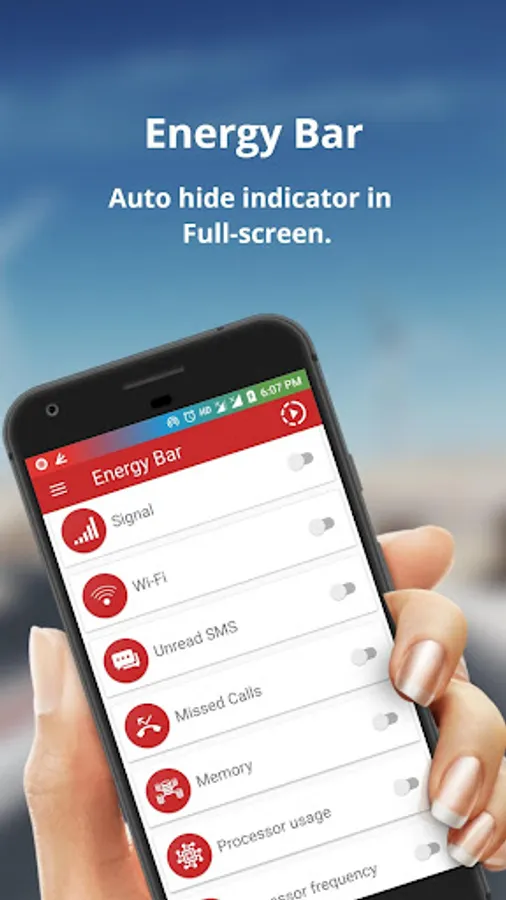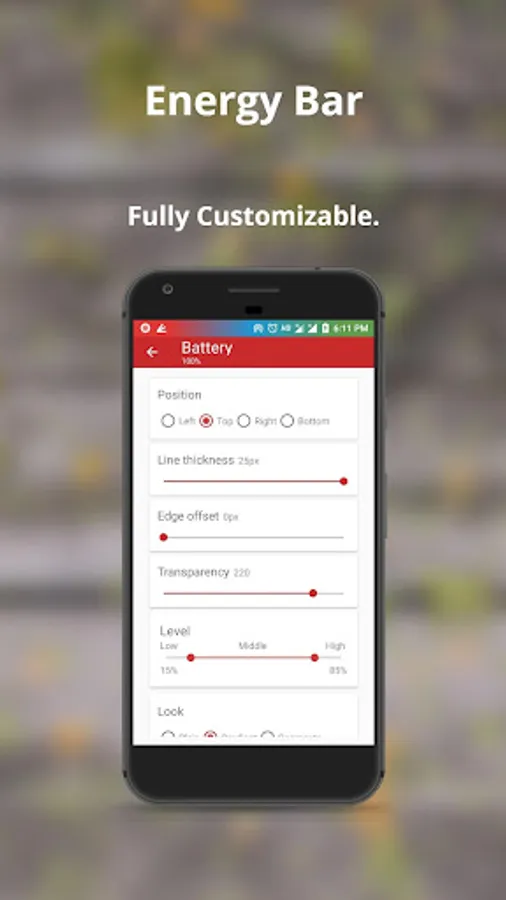 • Energy Bar can be set at any height from 1px to 25px (average height of the status bar)