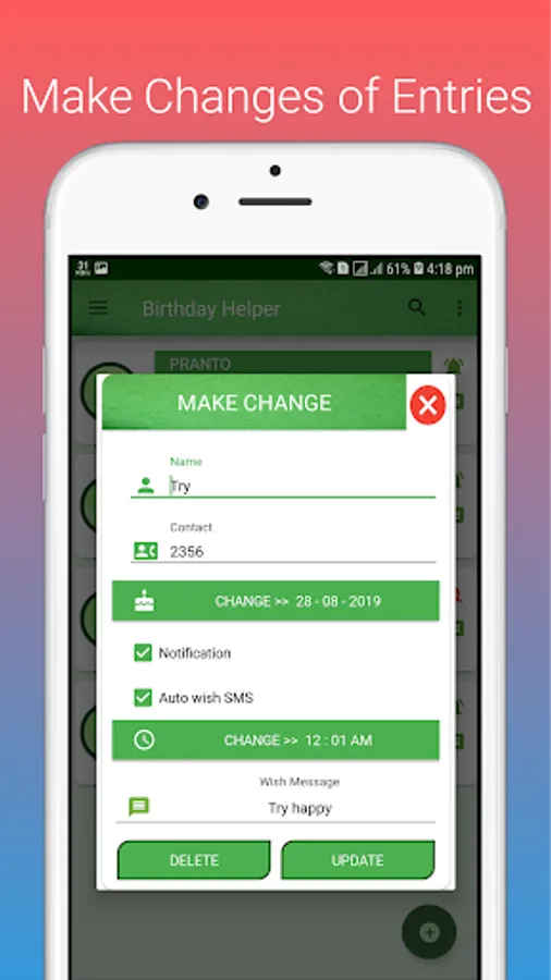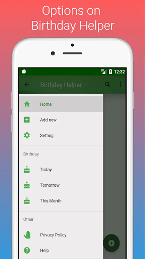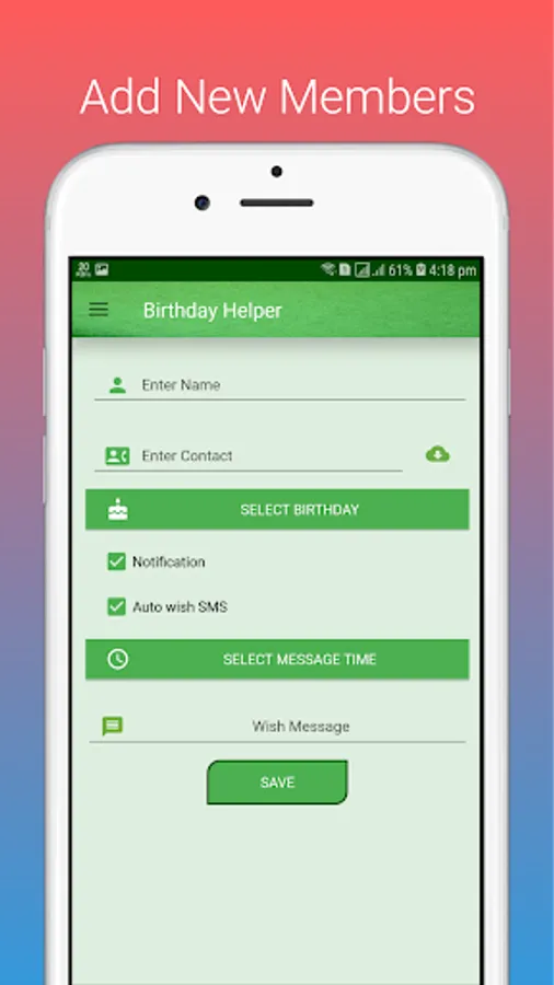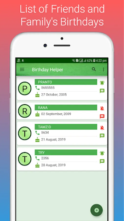So, "Birthday Helper" will help you to store that birthday information and notify or remind you like a reminder application when someone's birthday is held. If you check the "auto message" option, a wish message will be sent to the person. No more missing birthday, Enjoy!