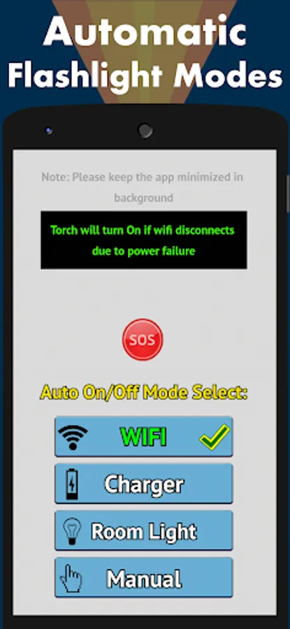 Automatic flashlight app can turn on automatically if there is a power outage. This smart LED torch app can also be used to locate your phone in dark on power failure. The torchlight app uses camera flash.