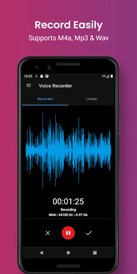This app provides pro features like audio-cutter, SD-card recordings, MP3 recordings, Cloud upload and much more.