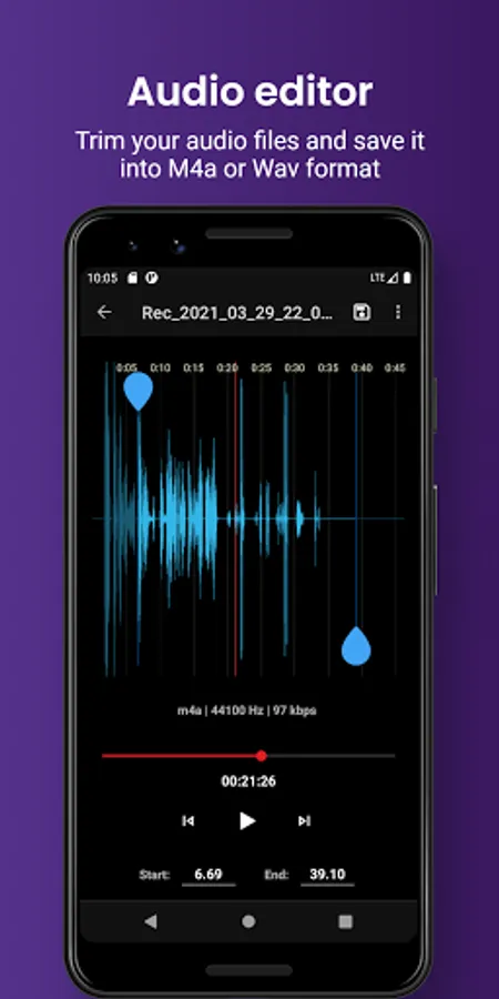 Trim & cut your favourite or unwanted portions of your recordings with in-built audio editor.