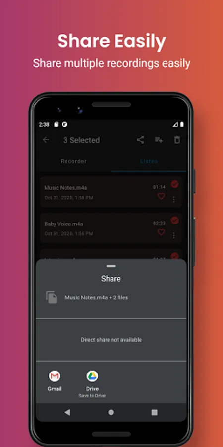 • Share audio files to other apps