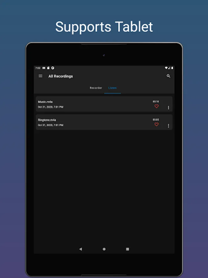 This app is designed for great user experience, you can quickly start a voice record and save an audio file with a single click.