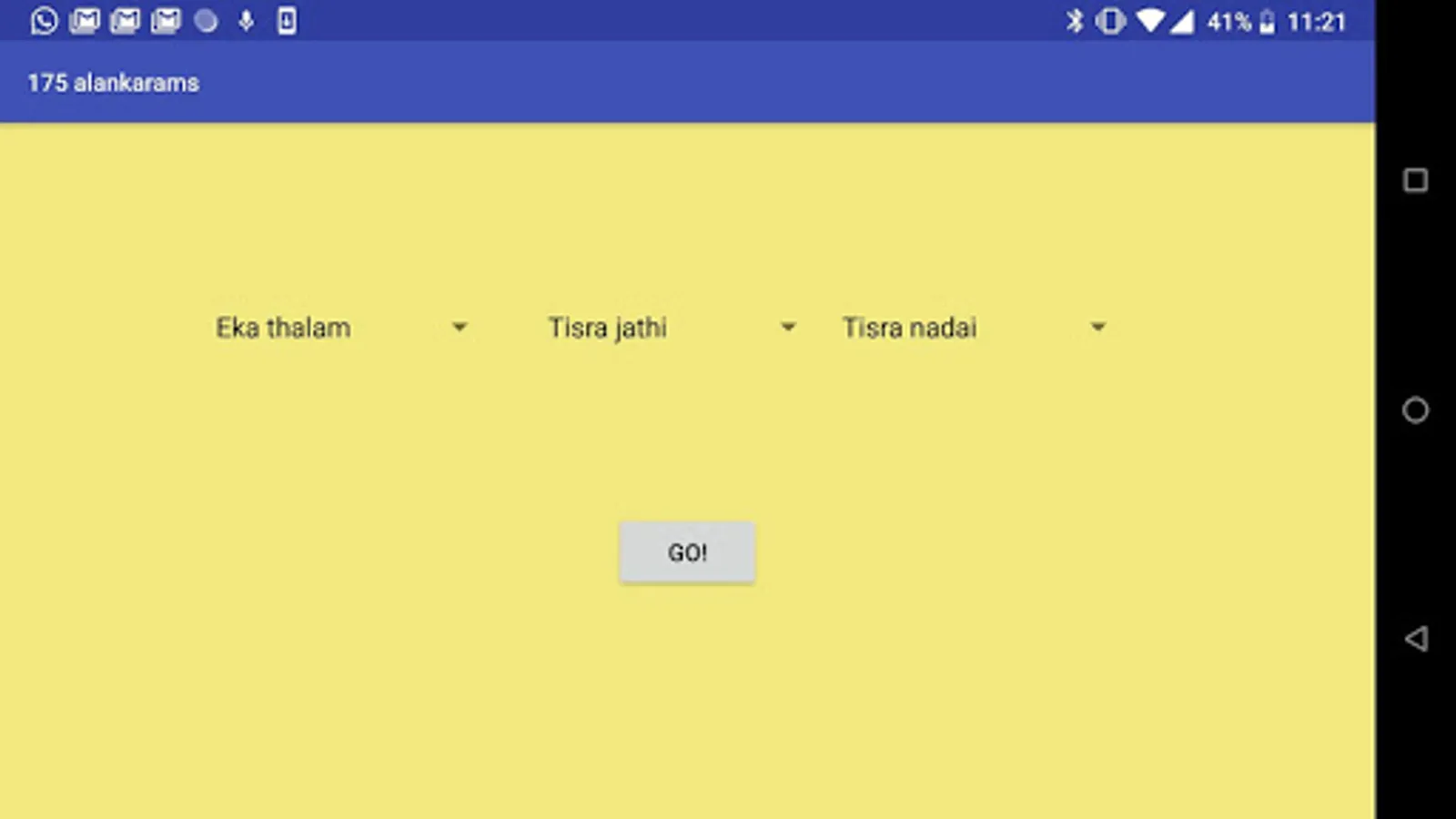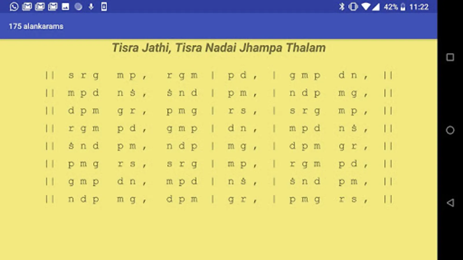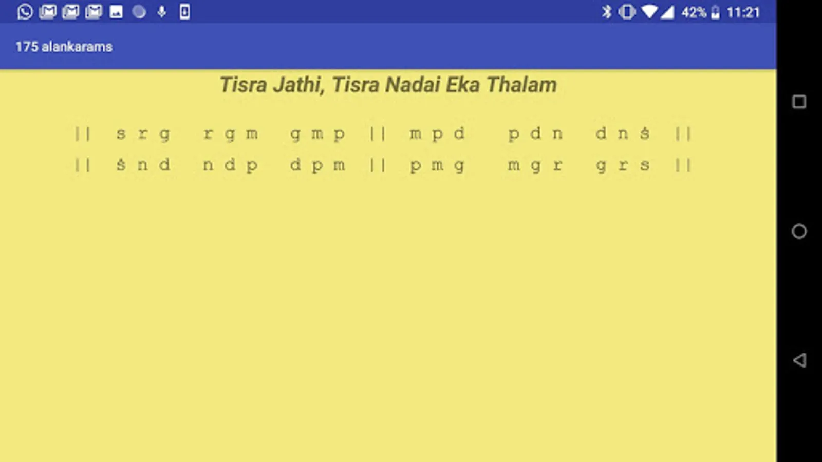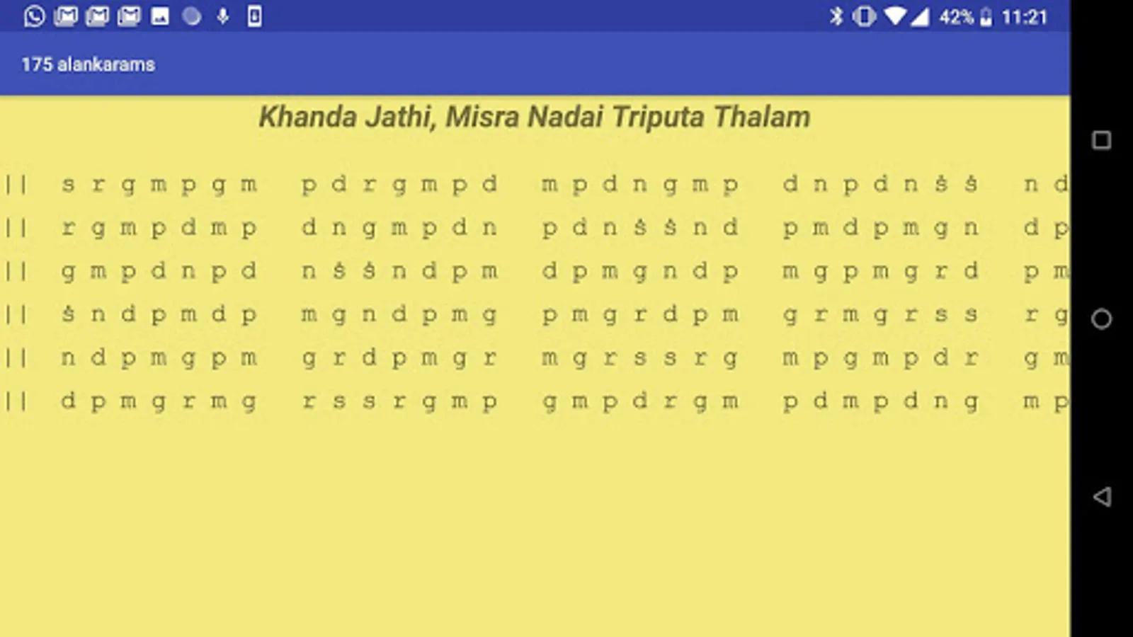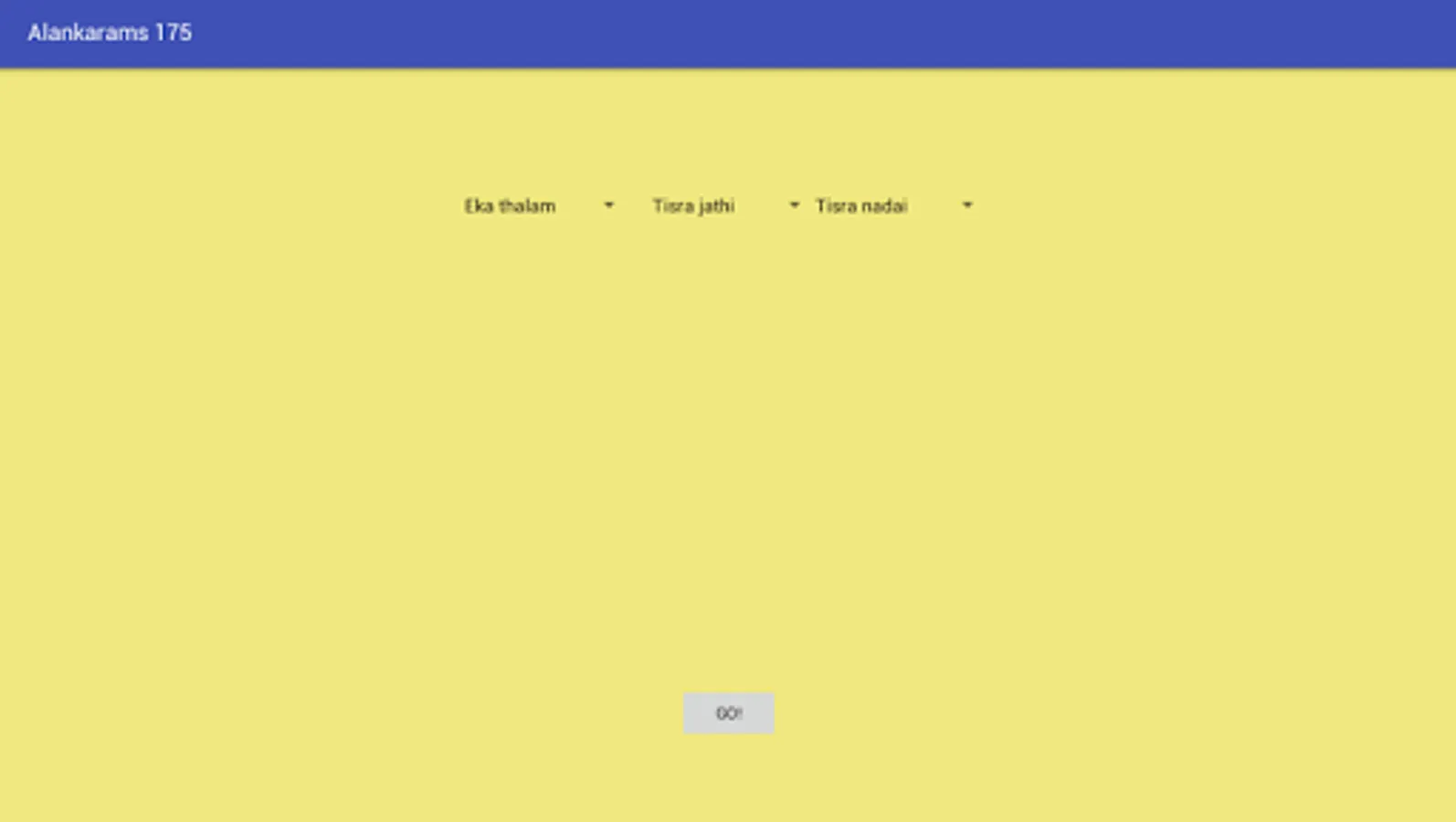 This app allows the user to select a base thalam, a jathi, and a nadai, then displays the corresponding alankaram given the inputs.