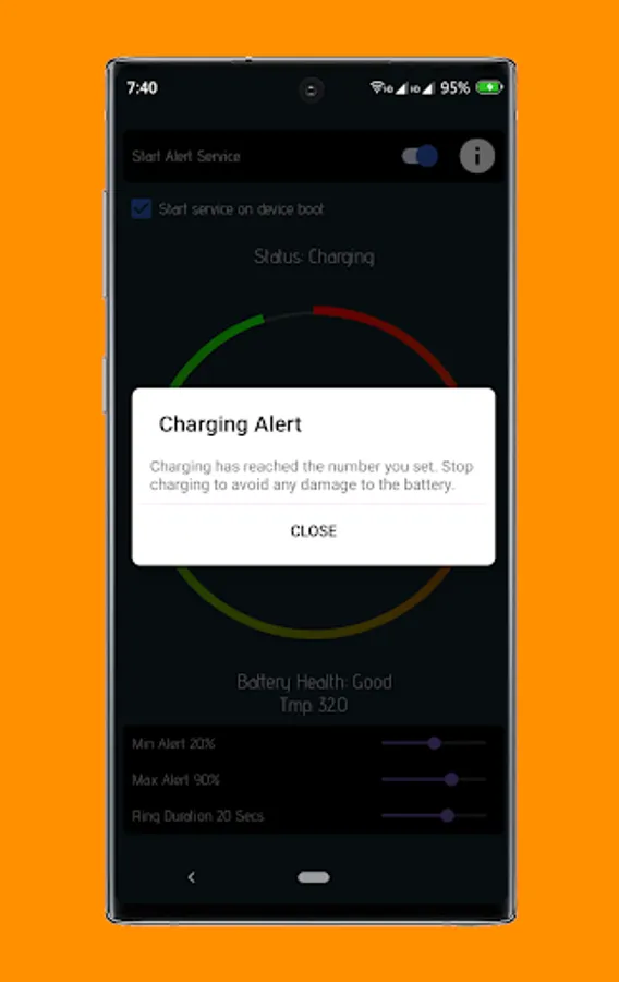 The app is designed to monitor your device's battery level and send you an alert when it reaches n%. This feature ensures that you never leave your device plugged in for too long, which can damage the battery and decrease its overall lifespan.