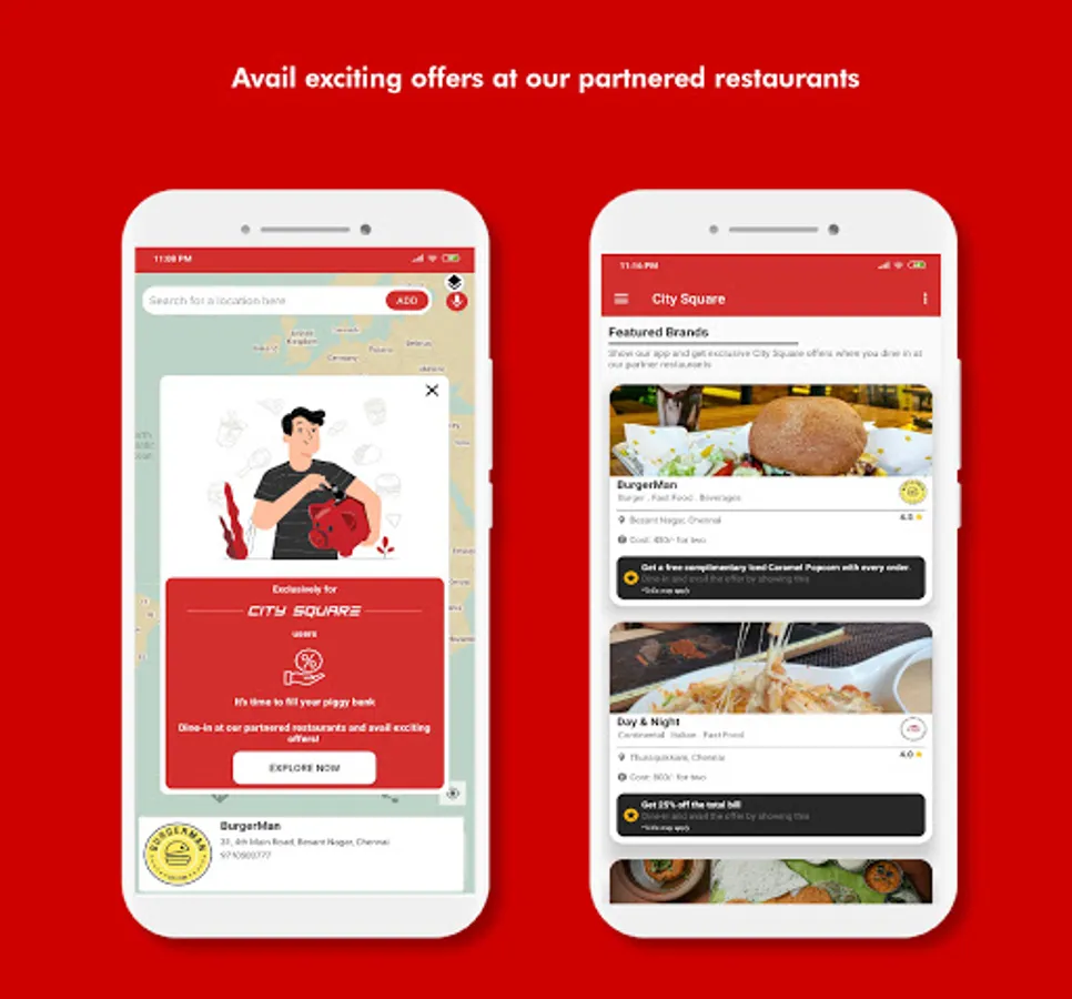 Install the City Square app and enjoy exclusive benefits at our partner restaurants. Avail discounts on your dining experiences.
