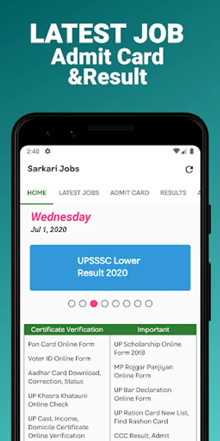 Sarkari Jobs is an Android App to display Latest Government Jobs Notifications. Get Latest Updates of Sarkari Results, Admit Card, Answer Key, Syllabus, Online Form, Recruitment, and Admission Related information for various sectors such as Railway, Bank, SSC, Army, Navy, Police, UPPSC, UPSSSC and more job alerts in only one place.