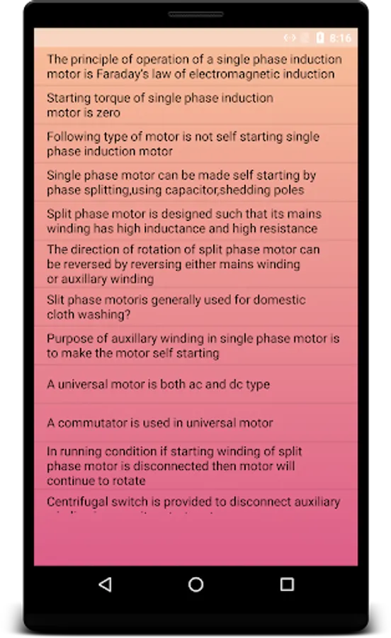 It is interesting, handy and knowledge building app. This material is useful for students, veterans and those who are interested in electrical subject.