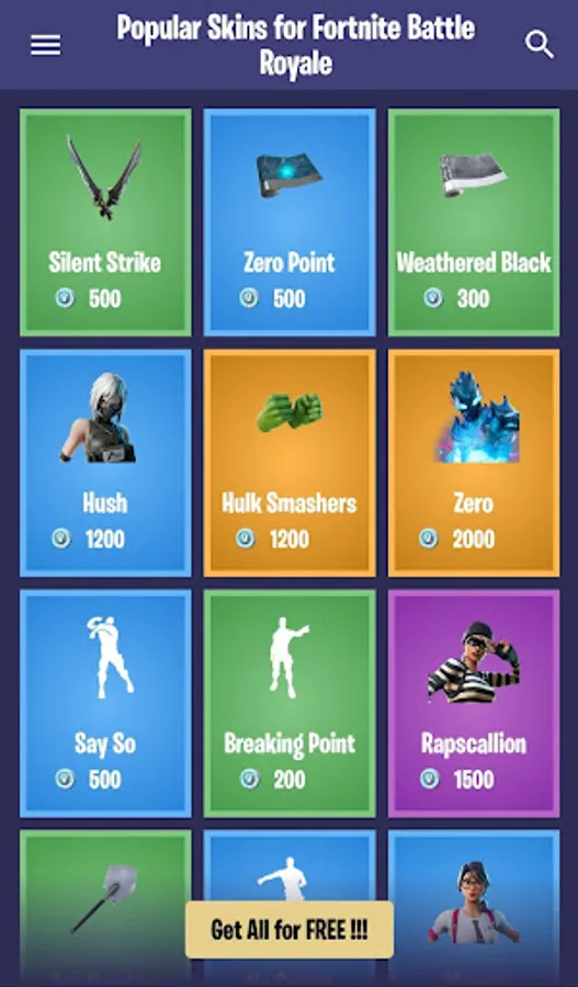 This free app content some popular skins for fortnite battle royale with all accesories items, and this app just made for fans.
