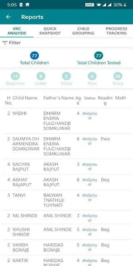 An application to be used by internal Pratham personnel only to collect child level data, to collect child assessment and visit level data. On a regular basis, the user will receive customizable reports to understand progress and plan further based on the data collected.