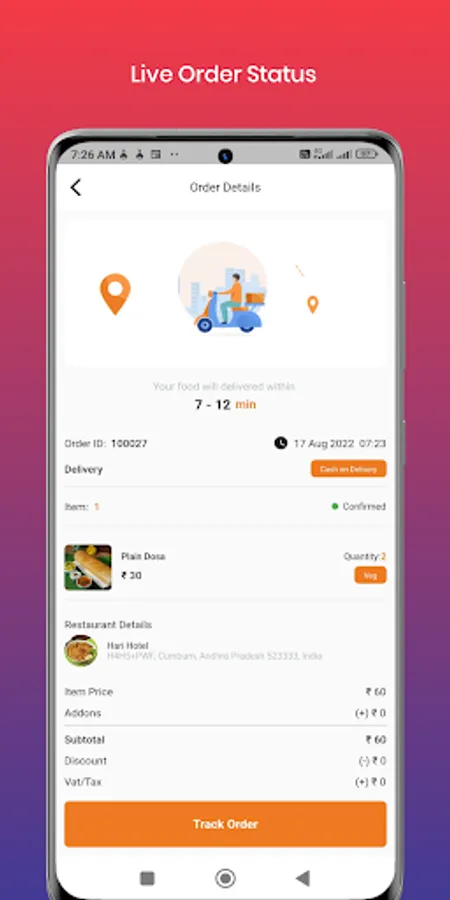 • Follow your meal’s progress, from the restaurant receiving your order to the delivery driver ringing your doorbell.