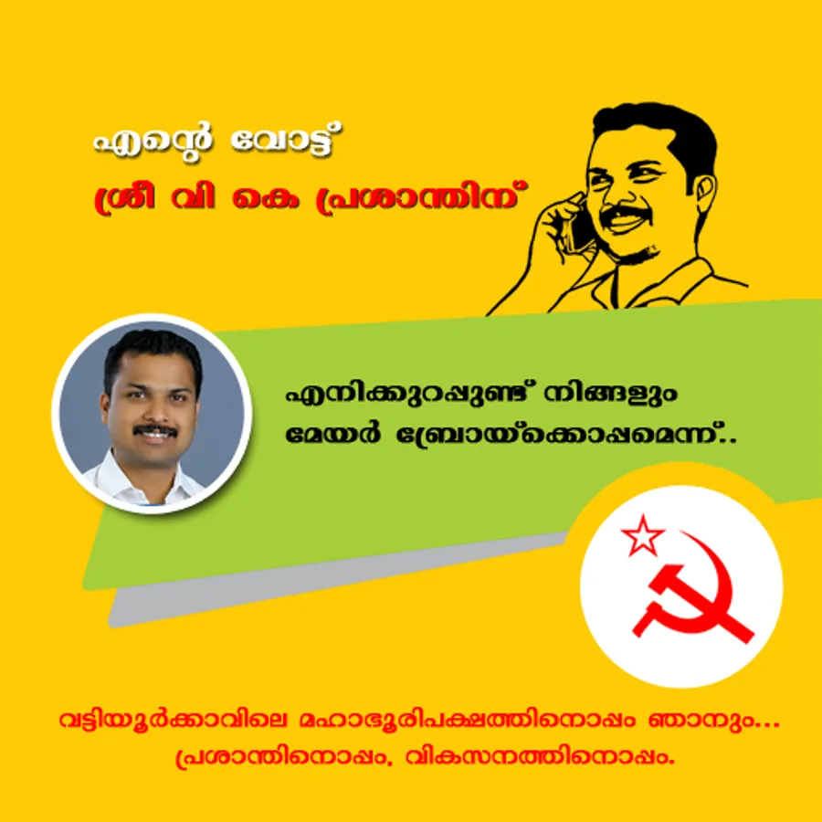 VK Prasanth, sitting mayor of Thiruvananthapuram Corporation contesting from Vattiyoorkkavu as LDF candidate. Thirty-eight year old Prasanth is the youngest amongst all three main candidates, and has succeeded to win the people’s hearts across political borders through his able administration. Prasanth, who is also fondly known as ‘Mayor Bro’ was there in the forefront to collect and ensure relief materials for the flood-affected people during August 2018 and August 2019.