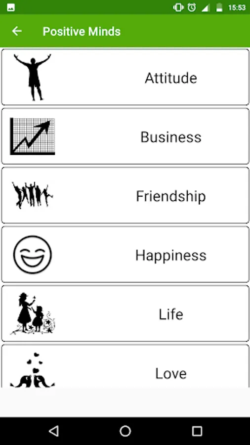 In this app, we offer a collection of quotes to bring more positivity to your life. The quotes are listed under categories like motivation, inspiration, love, friendship, movies etc. And quotes are also seggrigated based on authors name for easier navigation.