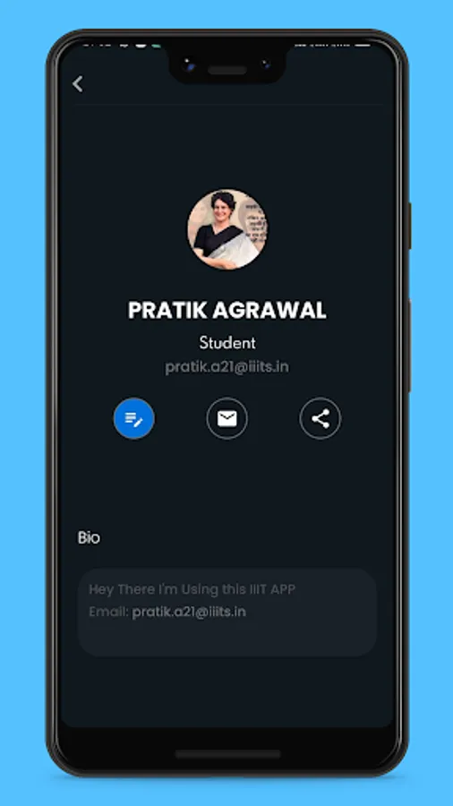 One of the 🔑key features🔑 of the IIITS Mascot is the ability to personalize your profile. You can easily customize your profile with your photo, bio, and other information to make it uniquely yours. This is a great way to help other students get to know you and connect with you on the app.