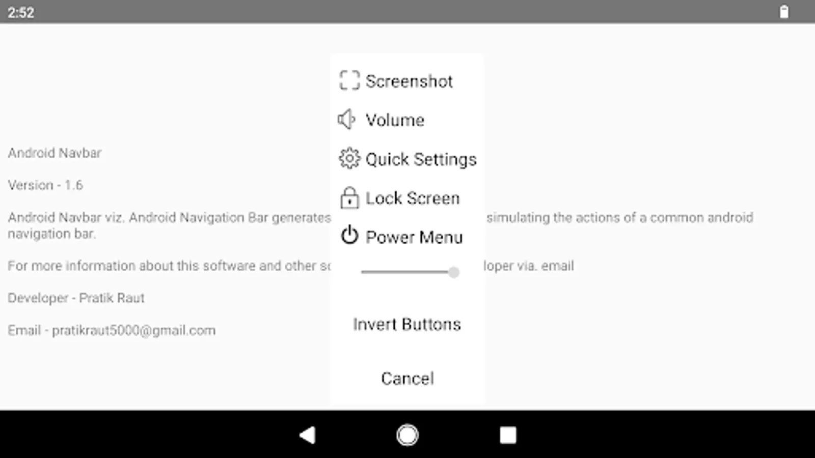 Android Navbar requires accessibility service for showing the navigation bar and extra options on screen using the default functions and features that are mentioned in 'Accessibility Service'.