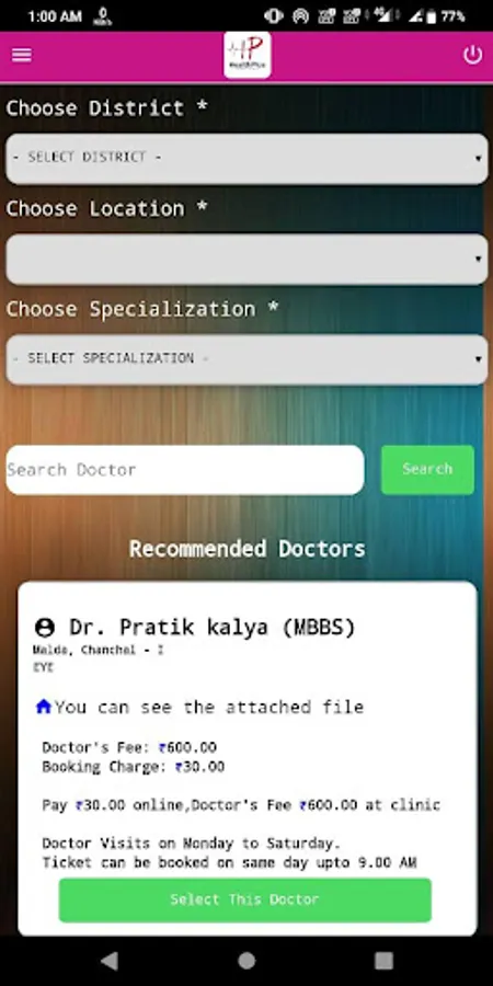 online doctor booking at home from healthplus app, make sure you have to pay only booking fee and get ticket at home.