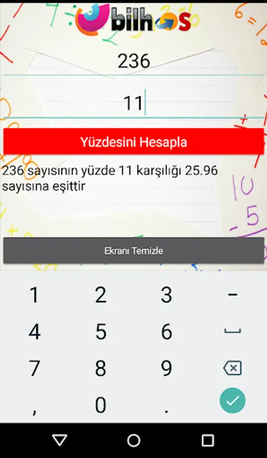 With this application that simplifies the percentage calculation, you will be able to make your calculations easily. In the Practical Percent Calculator application that can work without an Internet connection, just touch the button with the number you want to calculate and the percentage with the appropriate number. The result will appear on your screen in seconds.