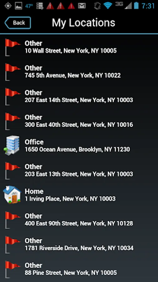 • GPS based, recent addresses used or Airport reservations