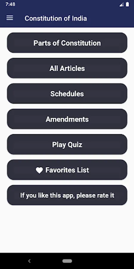 Constitution of India App will be very useful for Law Students and in preparation of UPSC Civils.