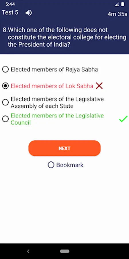 App has features such as Bookmark a question while taking test. Review Answers after taking test. Test Summary will be displayed after taking each test.
