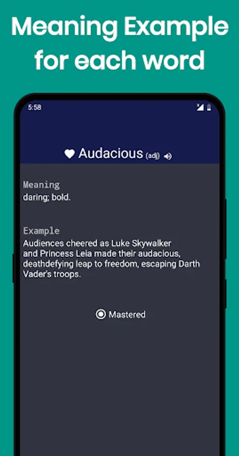 It has 4000+ English words with meaning and example, tests, flashcards, Important word list, favorite word list.Start learning English words and English Grammar now using this simple and beautiful app.