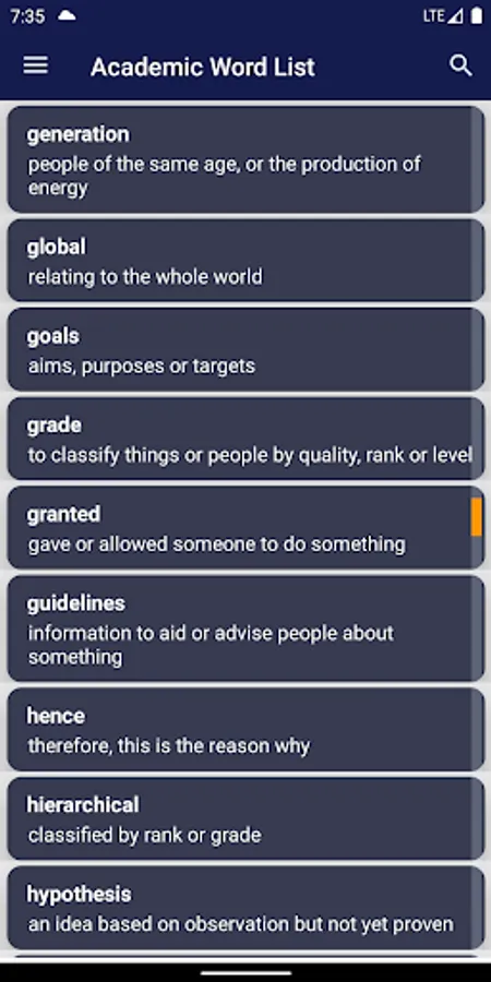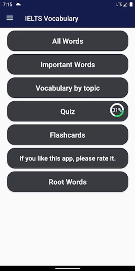 Improve your IELTS Vocabulary using this App. It has Academic Word list, words of different topics which are asked in IELTS exam, multiple tests.