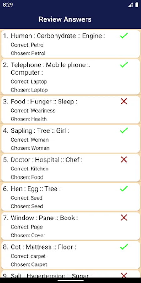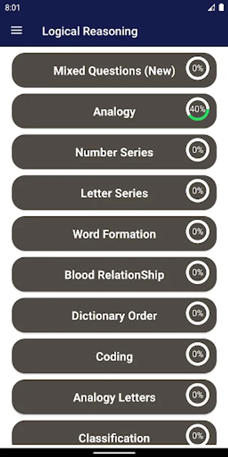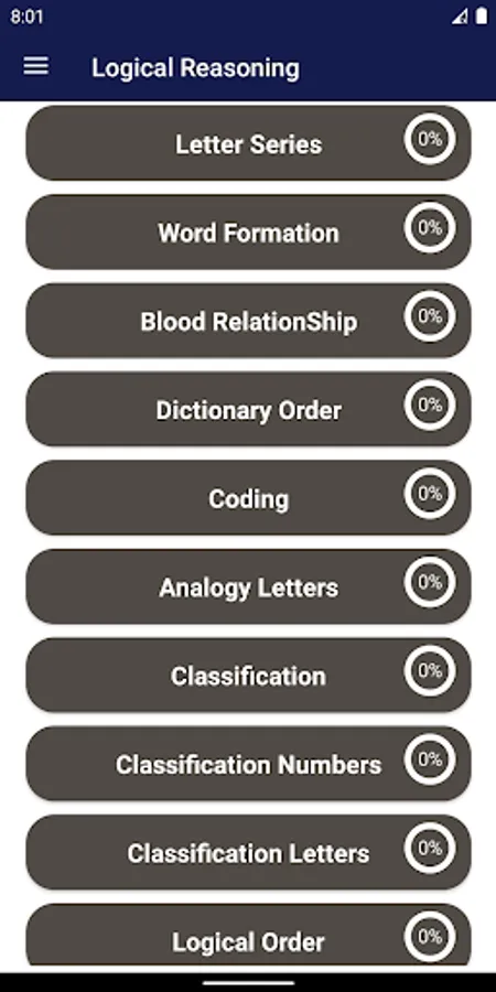This Logical Reasoning app has features Multiple choice questions on different categories of Logical Reasoning Section. After each Test, summary will be displayed indicating your marks and percentage.