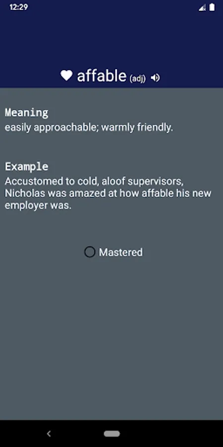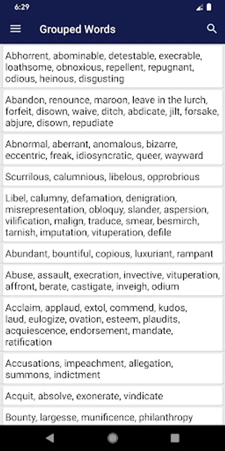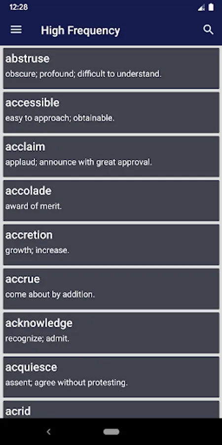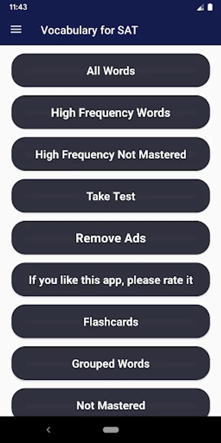 Improve your SAT Vocabulary with this App. It has 4000+ SAT words with definition and examples, tests, flashcards, high frequency word list, favorite word list.