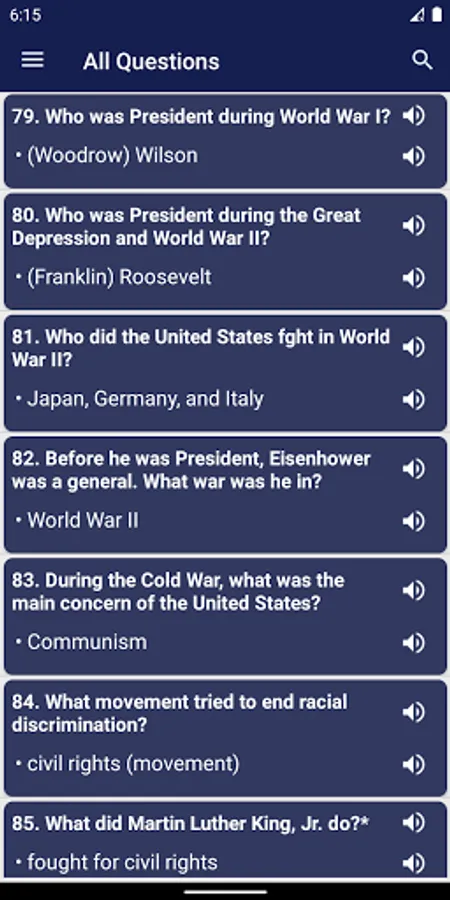 • Audio for all 100 US Citizenship Test Questions and Answers.