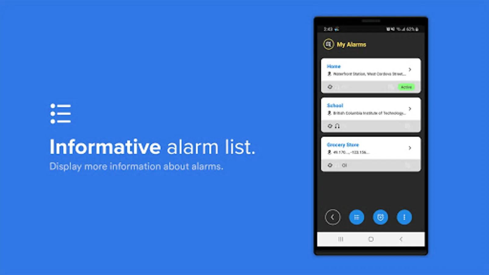 - Access your alarm controls via lock screen and notification bar