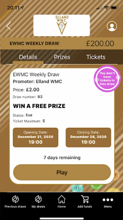 Elland WMC Raffles Screenshots