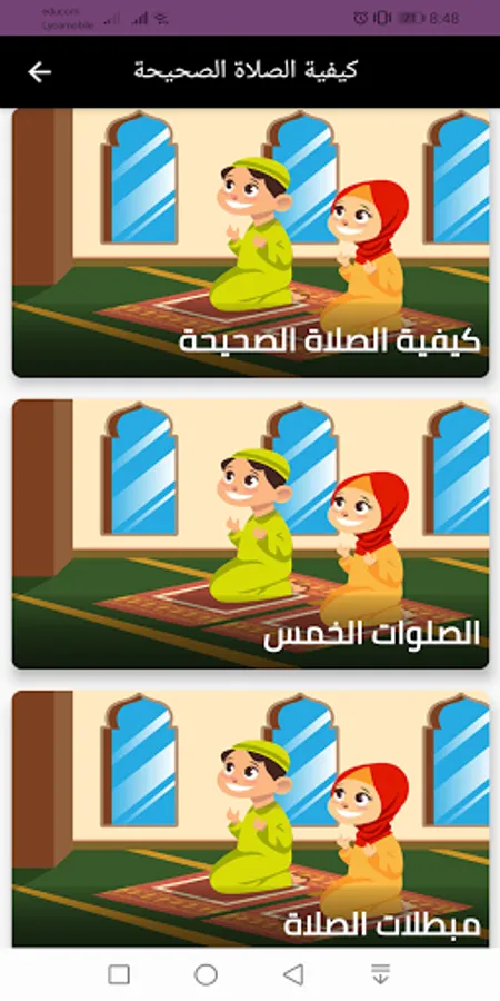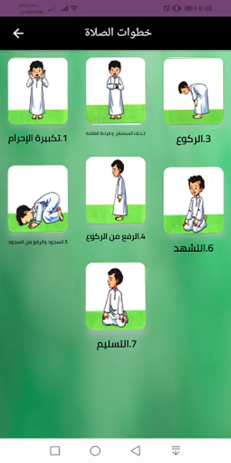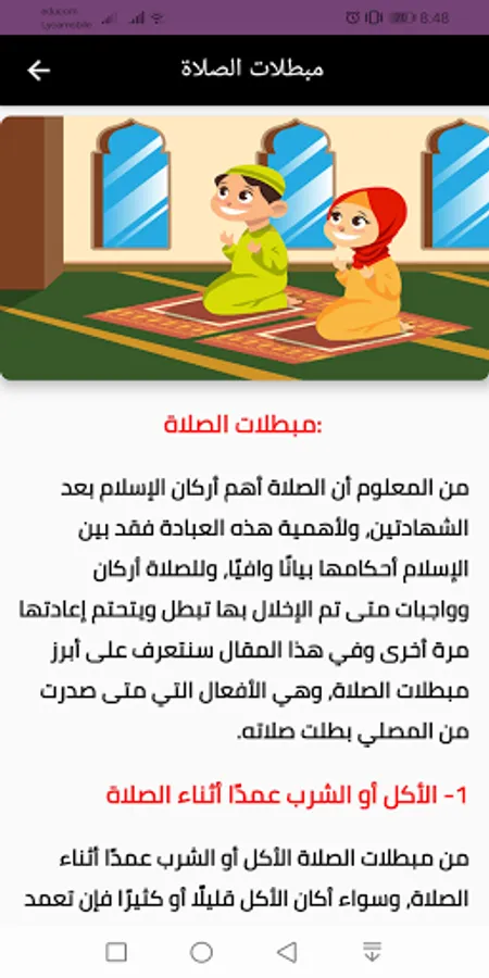 The application also includes an explanation of the five obligatory prayers. He also explained the invalidators of prayer.