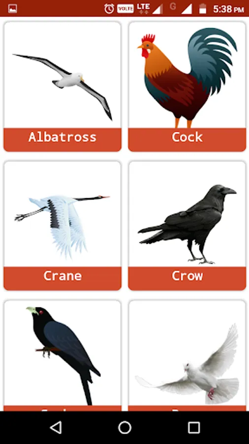 Containing 30+ beautiful birds illustrations,sounds and bird name pronunciation.- Quiz to recognize the birds from their sounds.