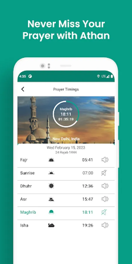 - Displays 5 Muslim Prayer Times: Fajr, Dhuhr, Asr, Maghrib and Isha along with Sunrise timing.
