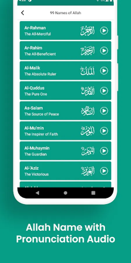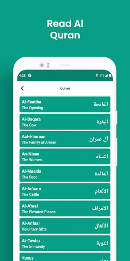 - Shows all 132 Duas in Arabic with their meaning provided.