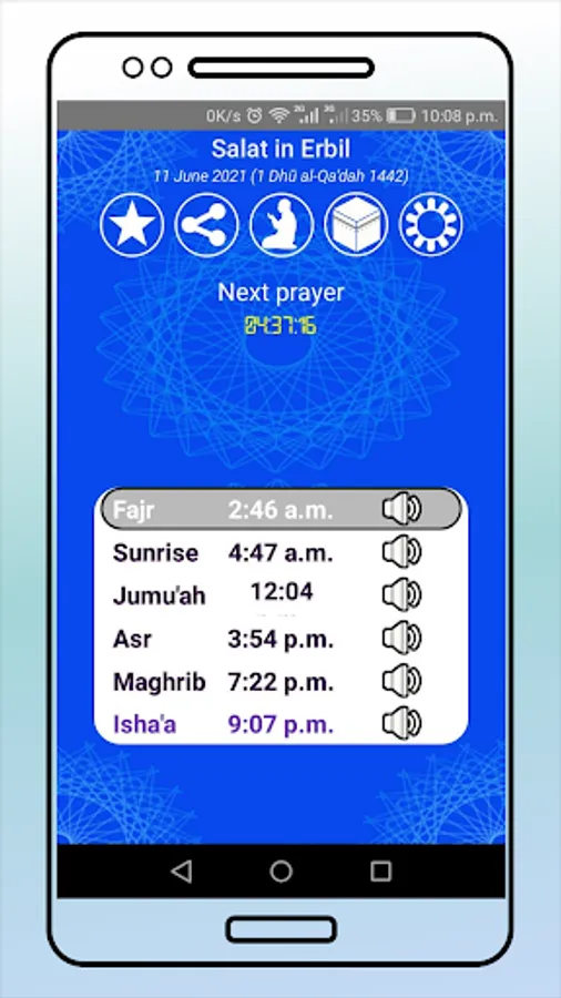 Azan Salat prayer times app is a mobile application that provides users with accurate prayer timings based on their location and the Islamic calendar. The app typically uses GPS technology to determine the user's location and then provides prayer times for the current day, as well as for the next few days.also include a qibla compass to help users determine the direction of the Kaaba in Mecca.