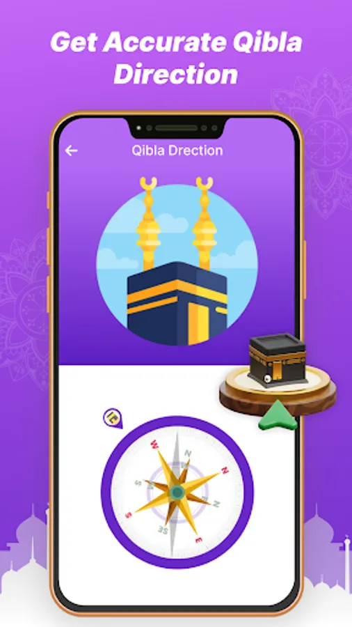 عن طريق تحديد موقعك تلقائيا، بإمكان هذا التطبيق أن يعلمك بأوقات الصلاة وكذلك تحديد اتجاه القبلة.