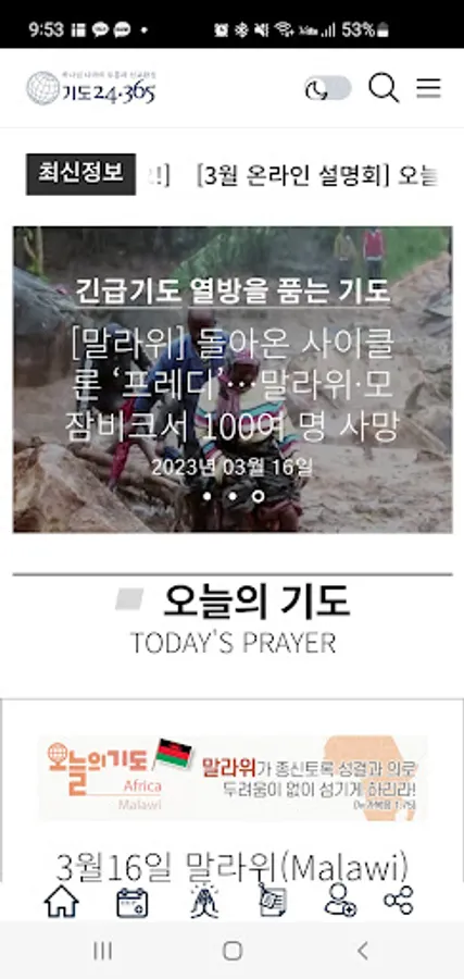 In 2021, the headquarters produces new information from 240 countries around the world, and provides it to prayers through websites and apps as [Prayer to Embraces the Nations]. Since the is a website-linked application, it does not require much storage space on the mobile phone. However, it can only work if you are connected to an internet network or Wi-Fi. Therefore, prayer videos linked to YouTube can consume a lot of data, so you can use it as a customer with an unlimited data contract or via Wi-Fi.