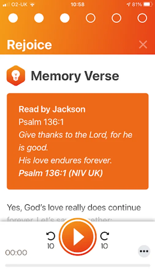 THE CONTENT lasts just 5-10 minutes and includes a memory verse, a short Bible passage to read and reflect on, a question to discuss as a family together and simple prompts for prayer. It has been written for families with children between 7-11 years old, but is likely to be suitable for a slightly wider range.