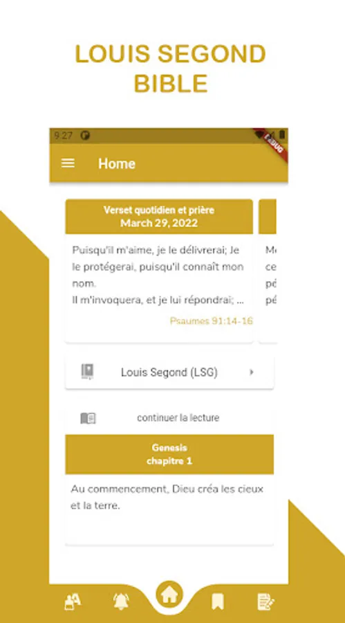 Louis Segond (LSG) combines the Holy Bible English Edition (King James Version) and French Edition (Louis Segond 1910 Version) into one. We are happy to release the Louis Segond (LSG) in android play store. This application contains both old and new testament. You will also receive daily verse which can be shared to friends and family. This application is free to use and no internet needed.