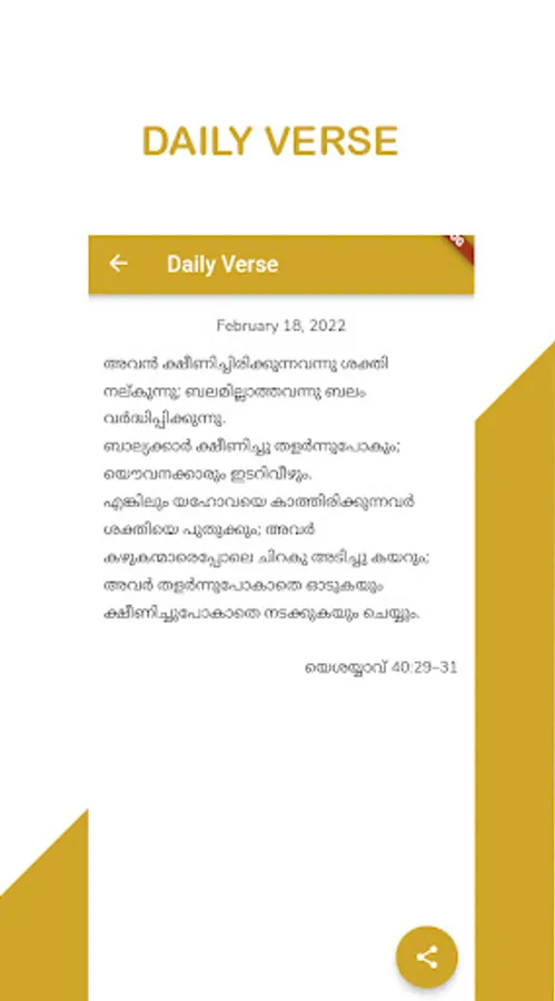We are happy to release the Malayalam bible (സത്യവേദപുസ്തകം) in android play store. This application contains both old and new testament in Malayalam. You will also receive daily verse which can be shared to friends and family. This application is free to use and no internet needed.