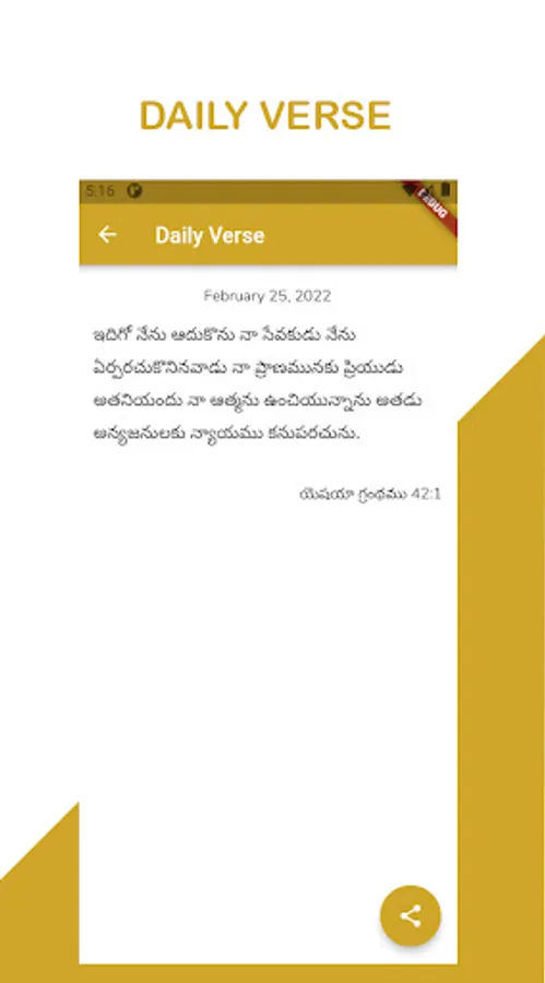 You will also receive daily verse which can be shared to friends and family. This application is free to use and no internet needed.